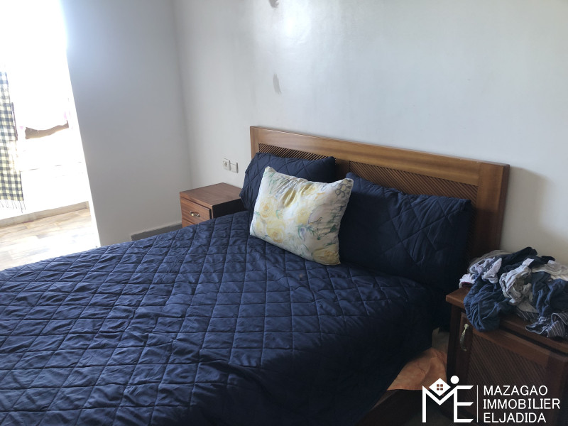 Splendide appartement de 90m avec double vue sur mer dans un bel immeuble sur l avenue principale d El Jadida composé d un vaste salon, séjour, 2 chambres à coucher avec chacune un très grand placard, cuisine et 2 salles douches.